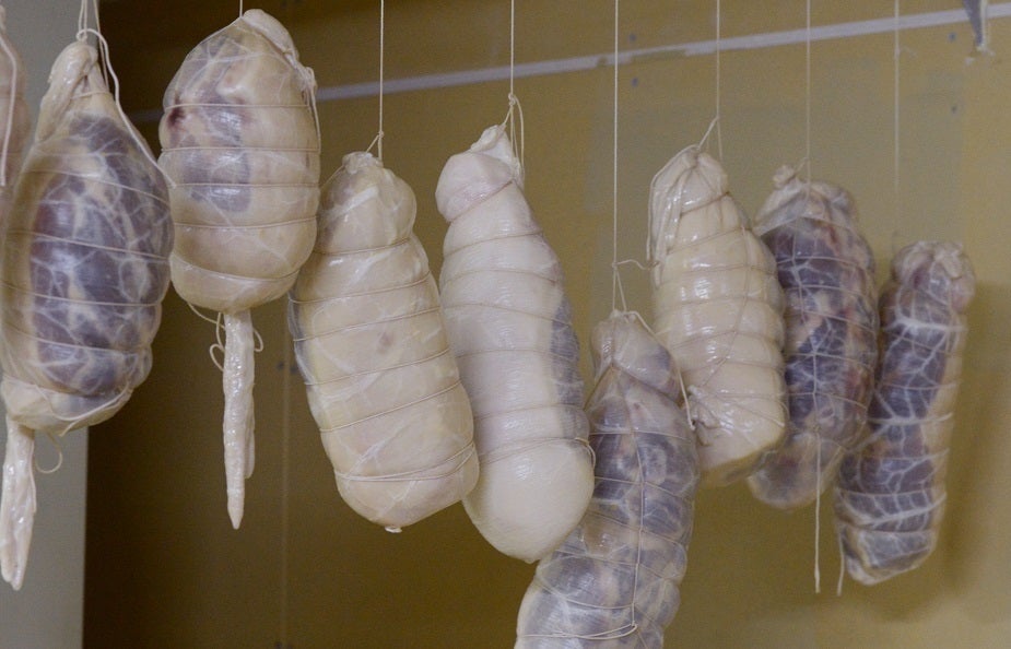 この商品は、新型コロナウイルスが広まっていくなか、 飲食店はもちろん、一般のお客さんでも提供しやすい商品はできないか? そこで考えたが、モモ肉をブロックわけして作る生ハムです。