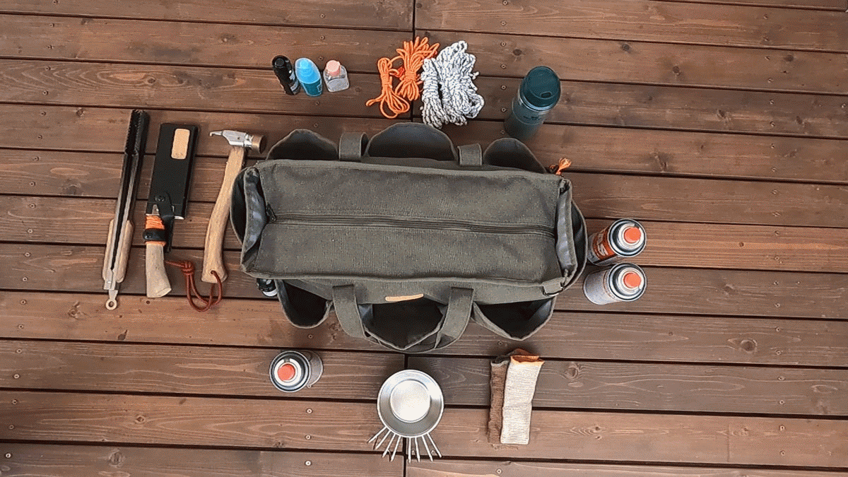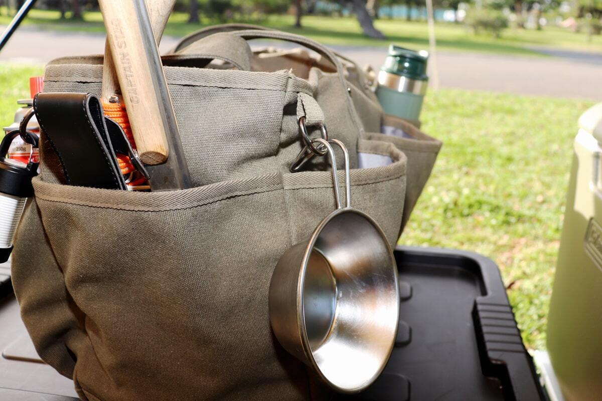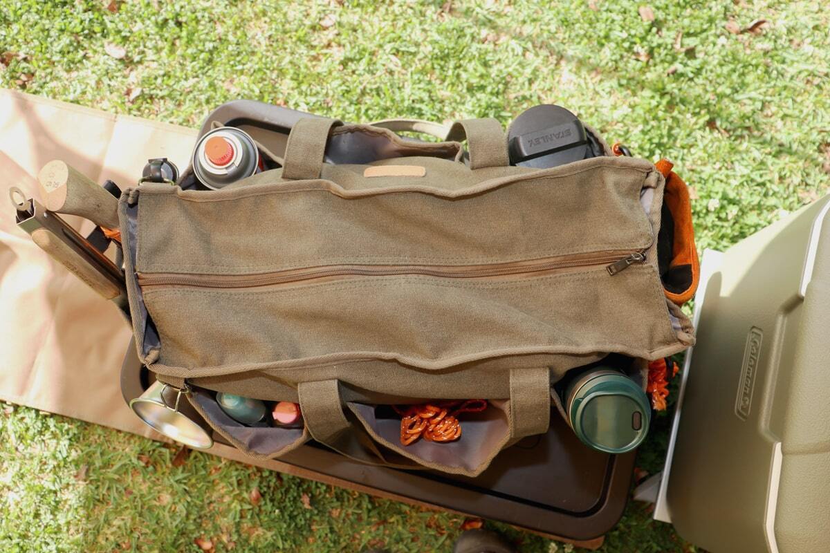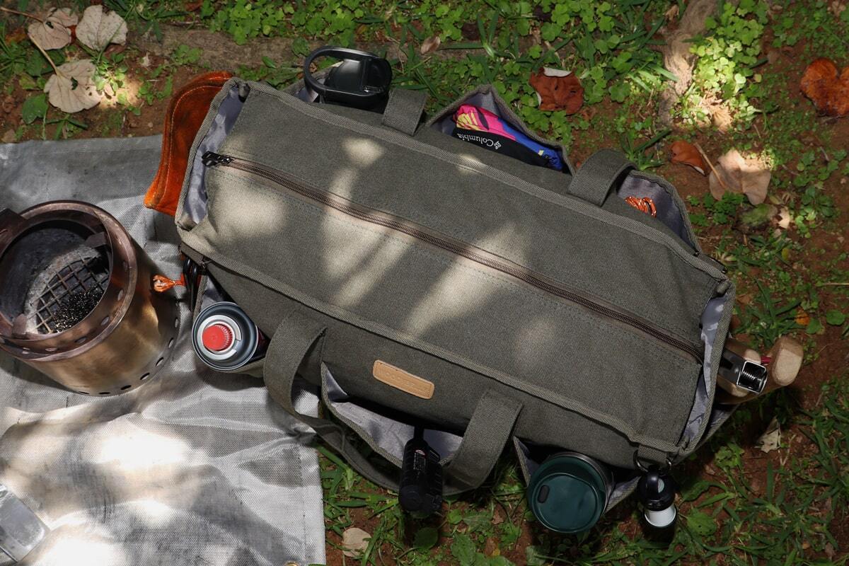 「万能ギアバッグ」は収納力と使いやすさを兼ね備えたキャンパーのためのバッグです。