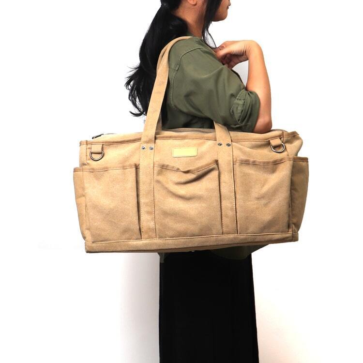 コンパクトながらスーツケース並みの大容量!小物も収納8ポケット軽量帆布ボストン