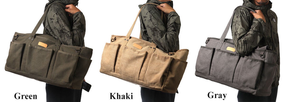 左上:カーキ/Khaki 左下:グリーン/Green 右上:グレイ/Gray