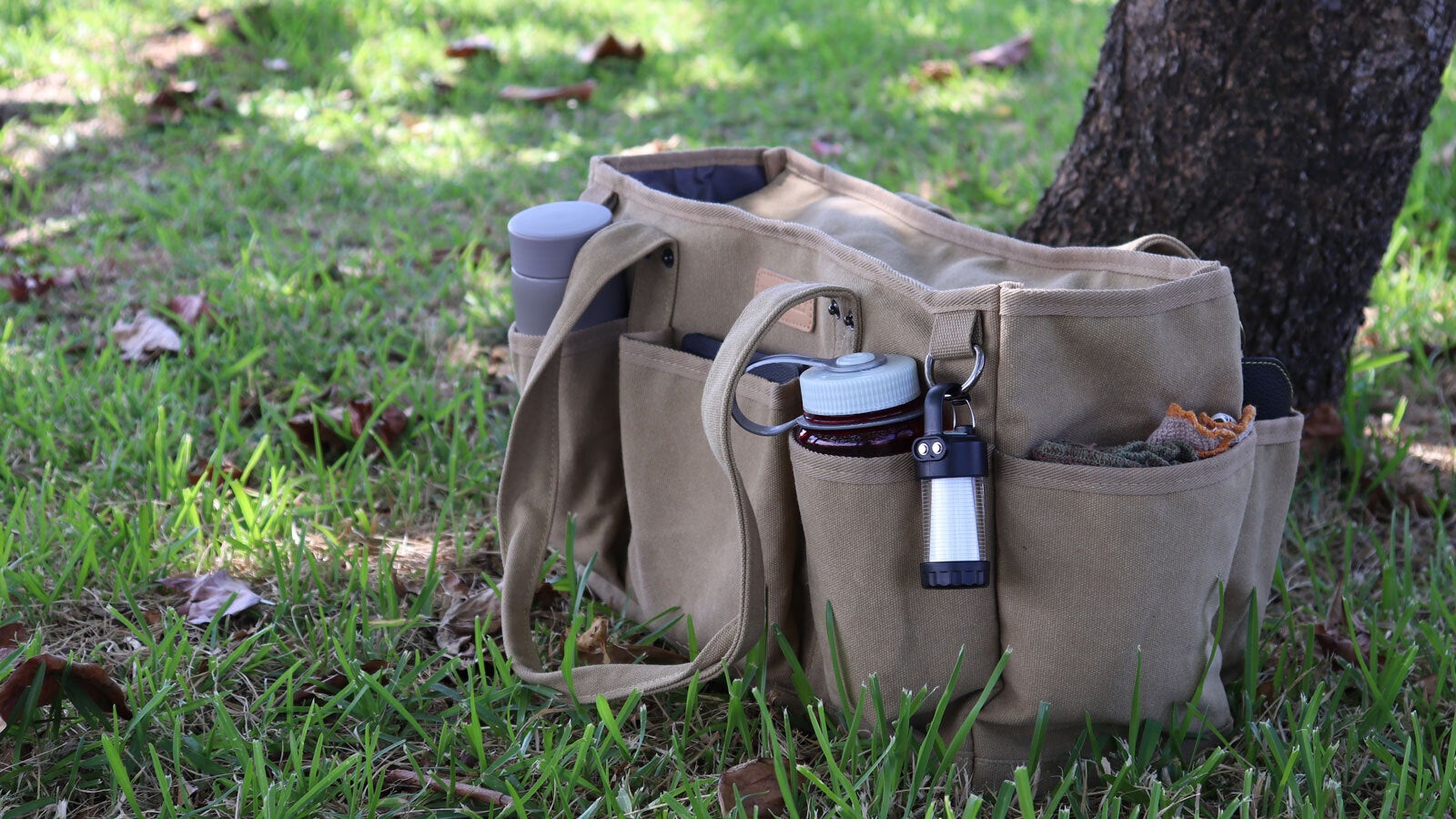 8個のポケットで囲まれた" 野遊び帆布バッグ "です。