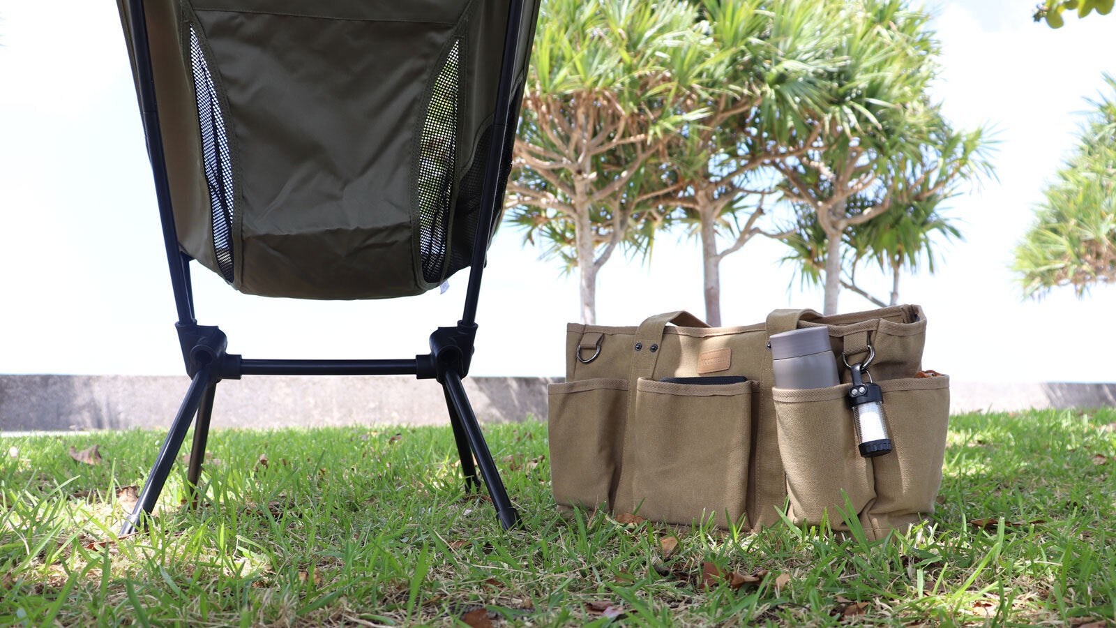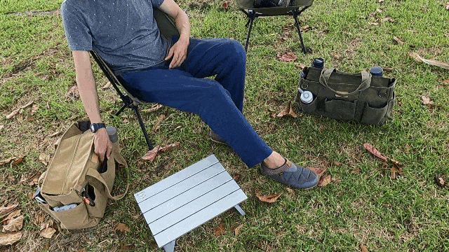 椅子もテーブルも全部バッグに入りチェアリングにも最適です。 (写真:M size)