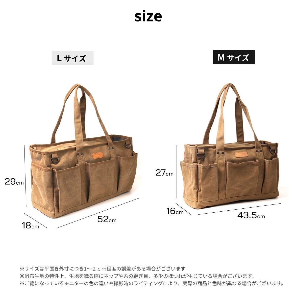 ・Mサイズ:横43.5 × 高さ27 × マチ16 cm