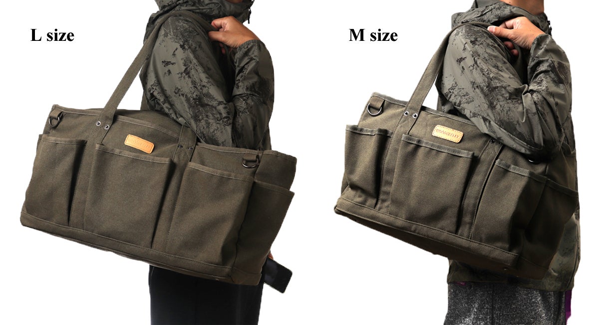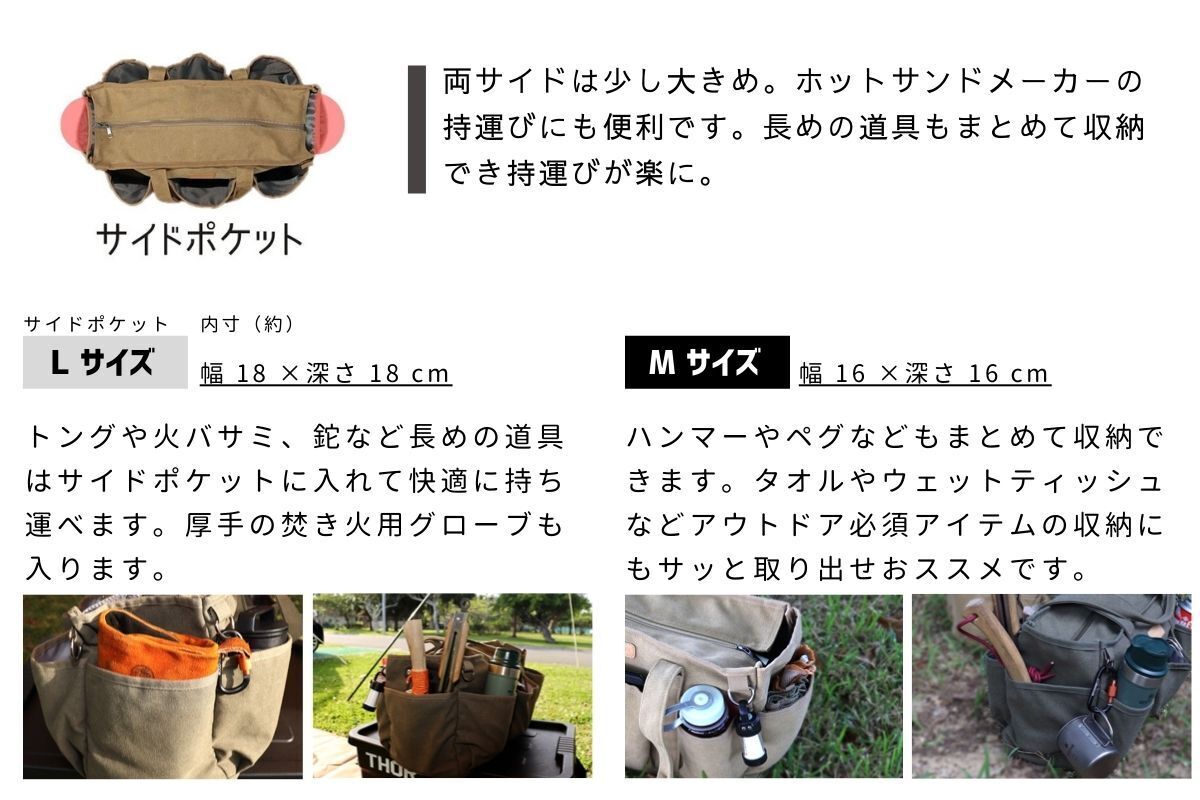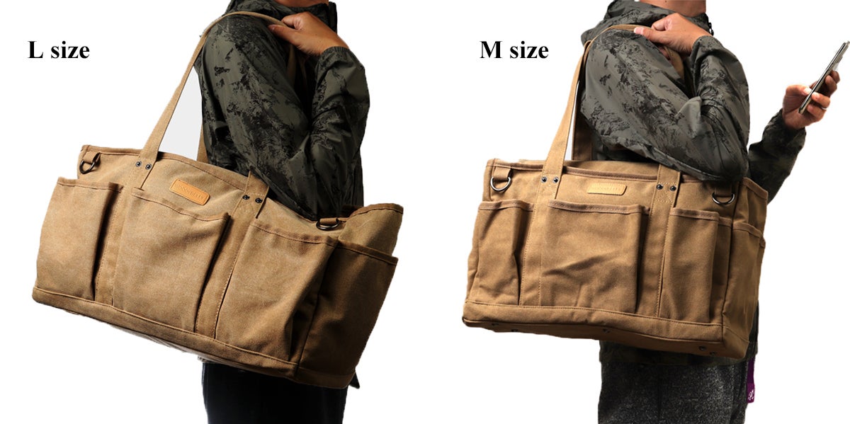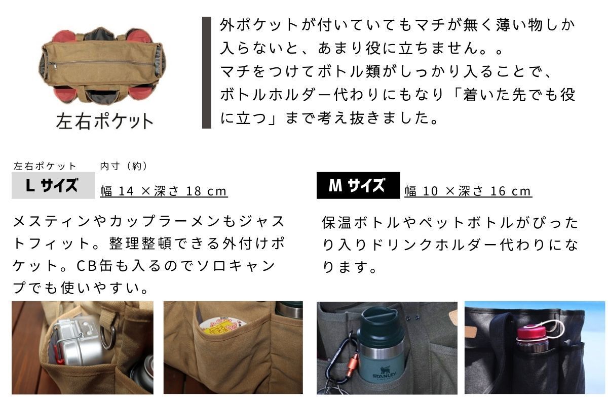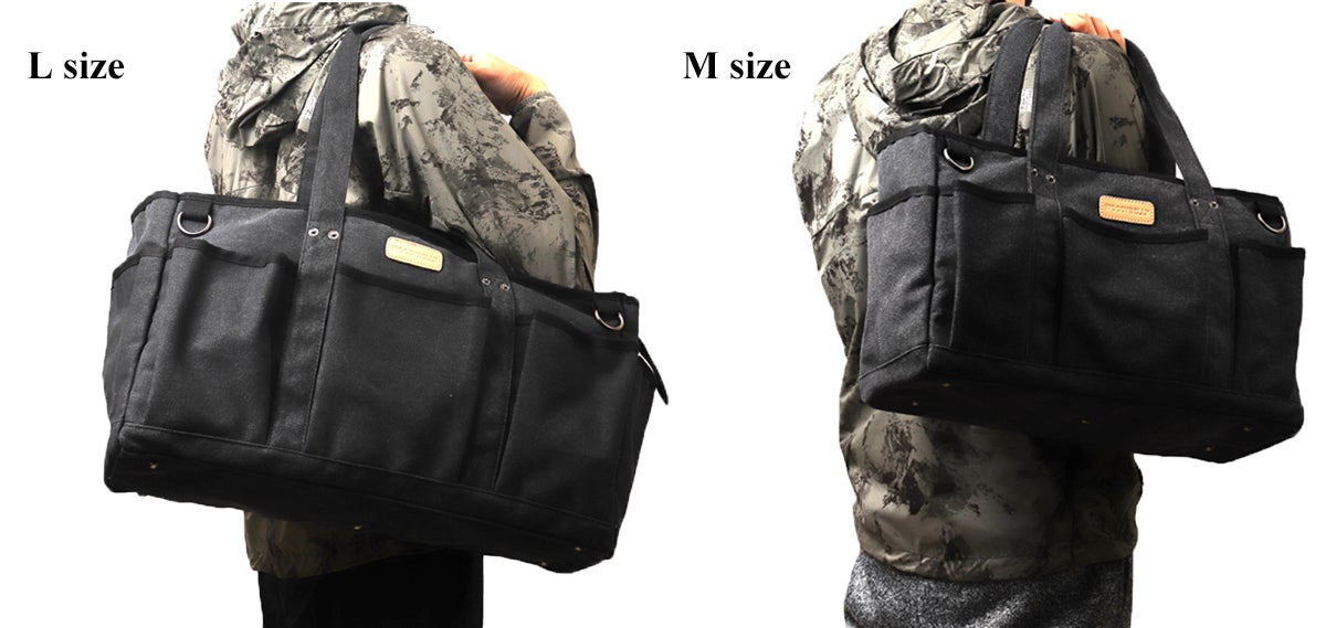 ※周囲のポケットはL・Mほぼ同じ物が収納できますので、メイン収納の大きさ・全体の大きさで選択されると使いやすいと思います。