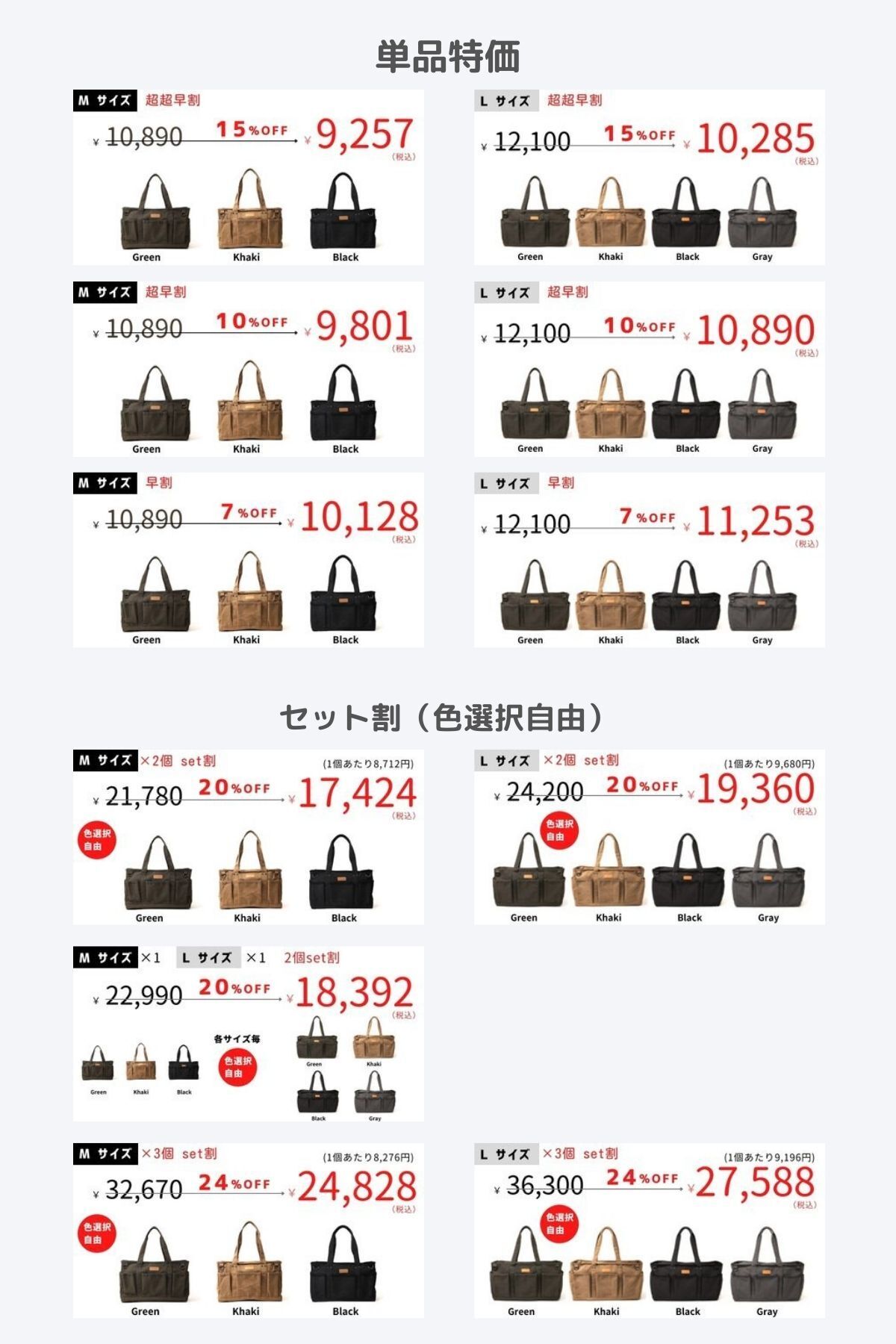 ・Lサイズ:一般販売予定価格12,100円 → 10,285円