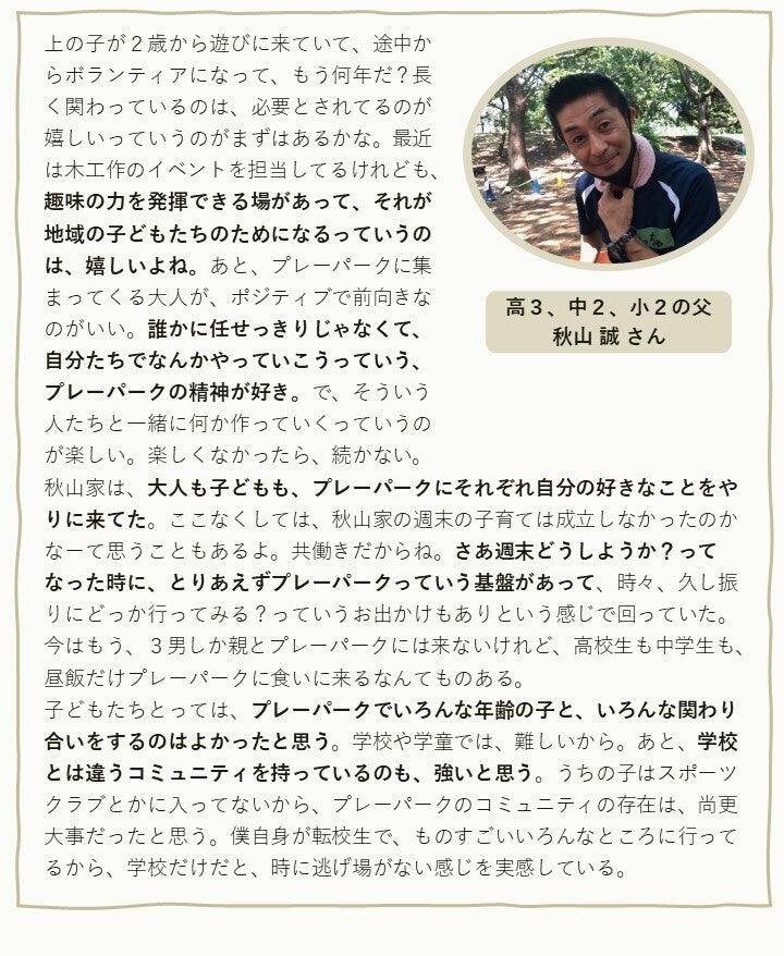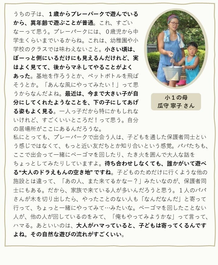 さいごに、『光が丘プレーパーク』参加者の声を紹介いたします。