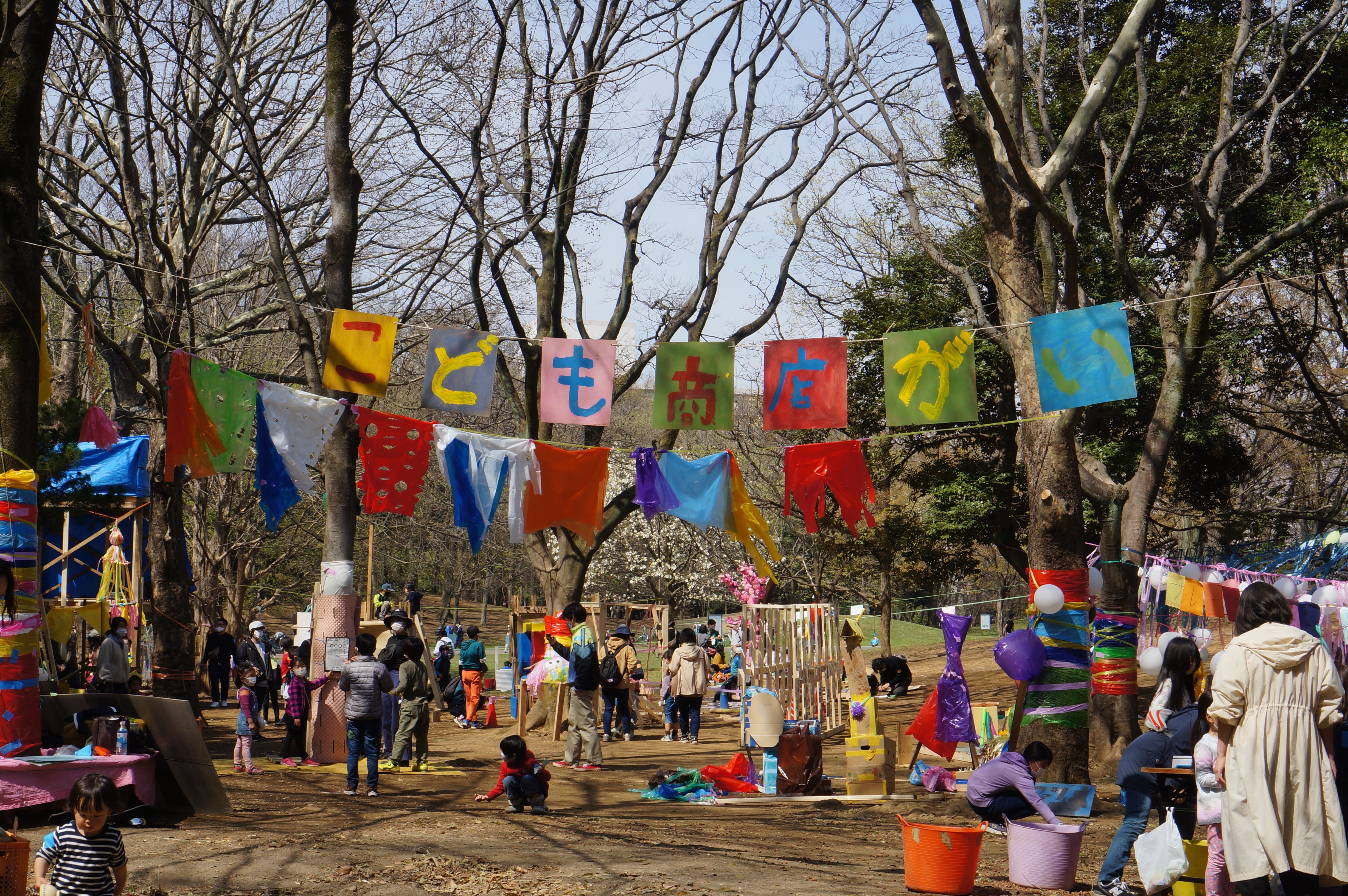毎年3月下旬に開催する『光が丘プレーパーク』の一大イベントです。子どもたちの「やりたい!」が「お店」というカタチとなります。(使えるお金はどんぐりと交換してもらえる「あっそびー」という仮想通貨です。)