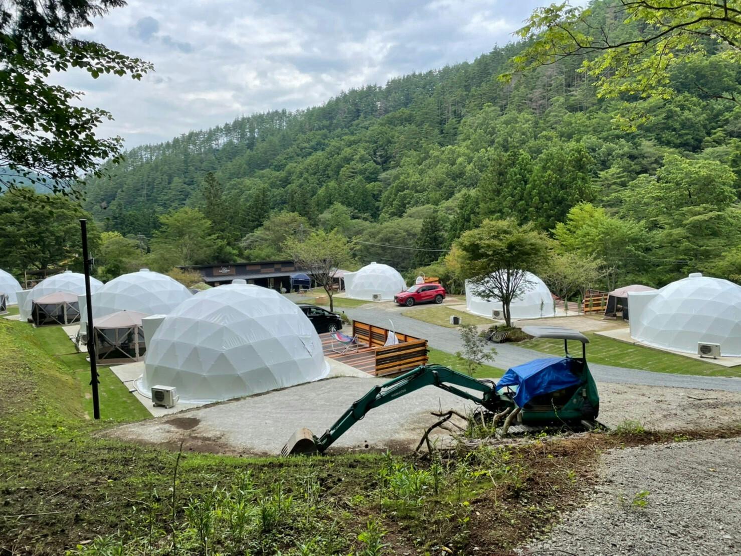 先日、竣工式を無事済ませ、グランピング施設としてほぼ完成しましたので写真を改めて掲載します。