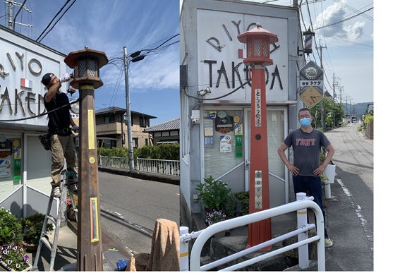 8月2日 灯籠の塗装開始!9月中には完成予定です! 施工にかかわる道路占有許可は現在申請中です