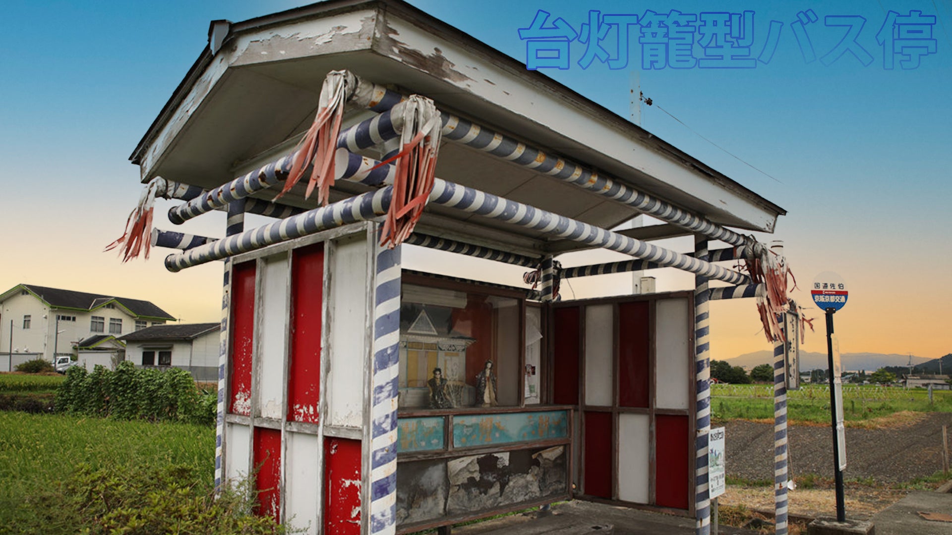 設置から早や27年…もうボロボロです((+_+))経年劣化に台風被害。。灯籠は錆びつき色褪せ…バス停も…バス停の中のお人形さんのお顔も可哀想なことになっております。悲しいです。