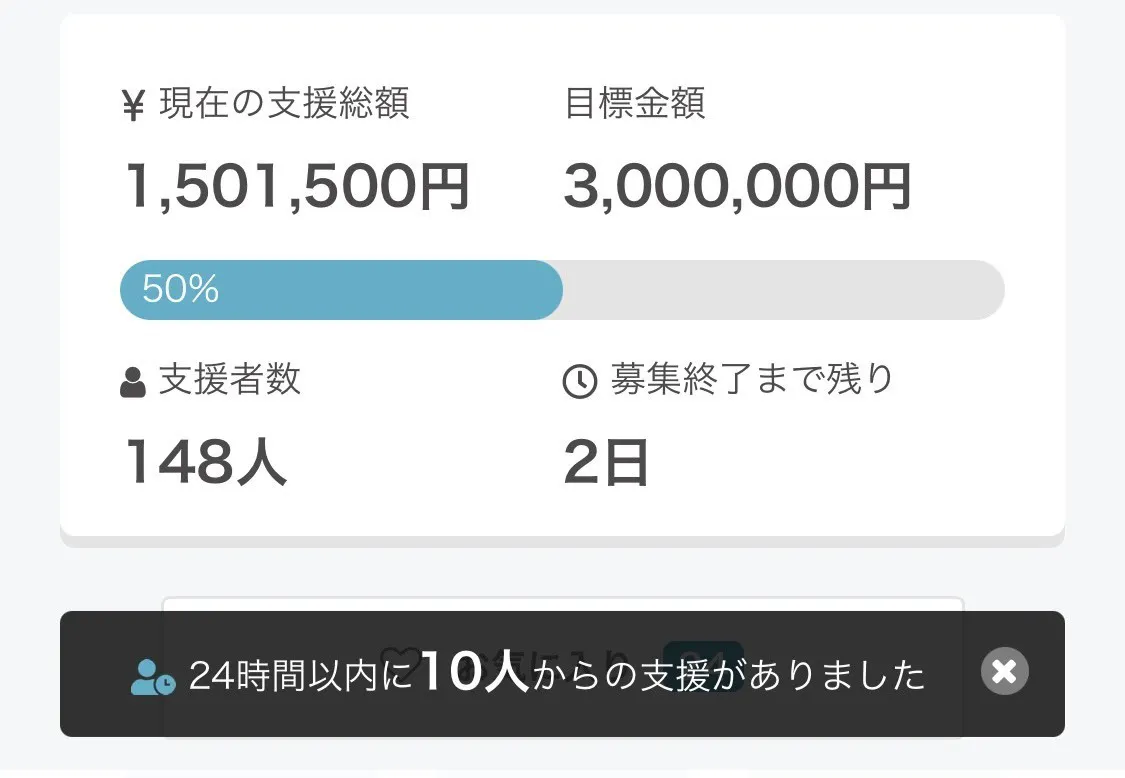 この度は、プロジェクトの募集終了日が近づいてきましたので、お知らせです。