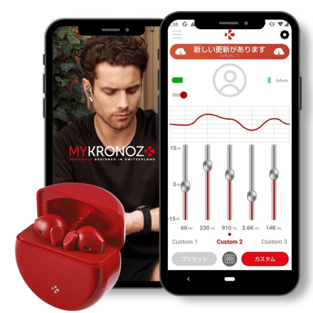 App StoreやGoogle Playで「MyKronoz」と検索し、無料アプリをダウンロードしてお楽しみください。イコライザー機能はAndroidのみ対応しています。アプリ内で60Hz〜14KHzの周波数帯域の中から、あなたの聞こえにくい音域レベルをブーストし補います。「聞きたいものをより鮮明に、聞こえにくいものをより聞き取りやすく」を実現します。
