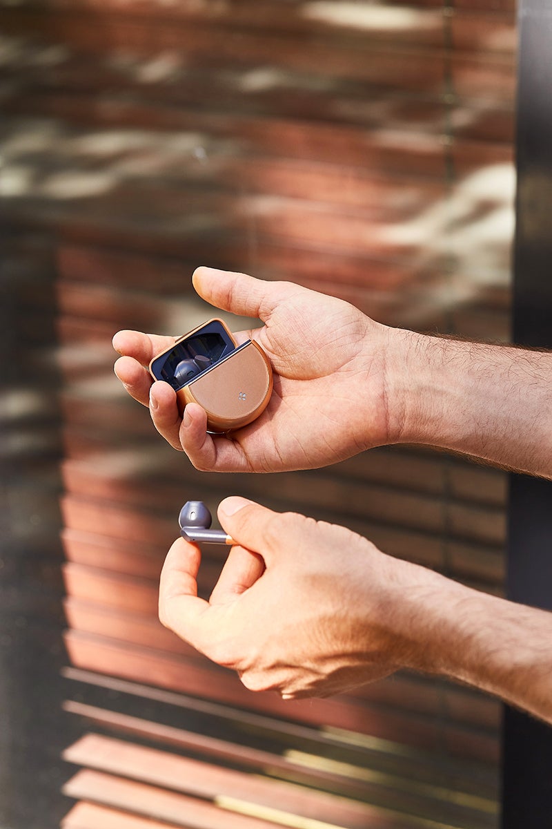磁気テクノロジーでイヤホンケースにピッタリと収納することができ、抜け落ちることはありません。また、不要なボタンなどを搭載する必要がなくなったため、大容量バッテリーでありながらコンパクトなサイズを実現することができました。