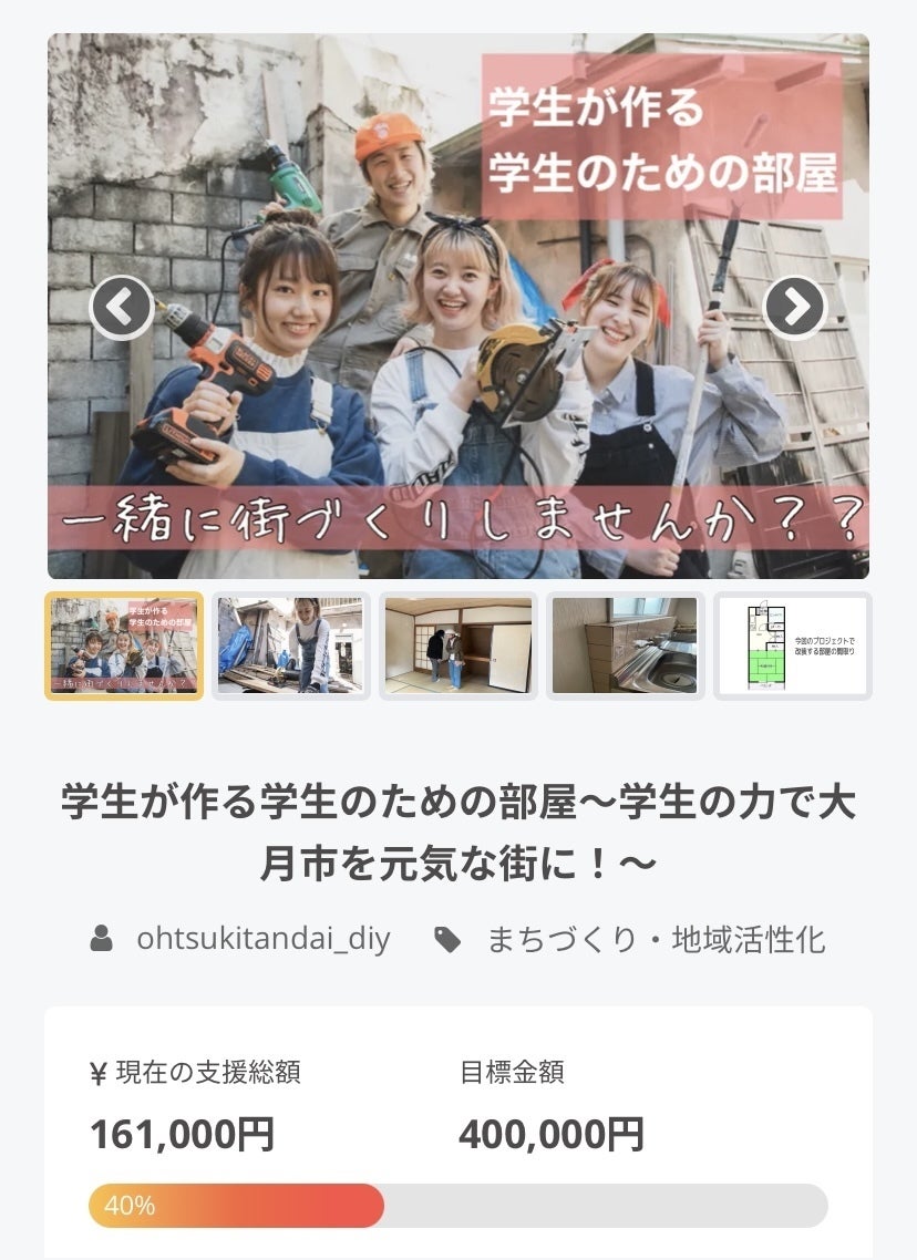 皆様のおかげで支援金が40%達成いたしました。