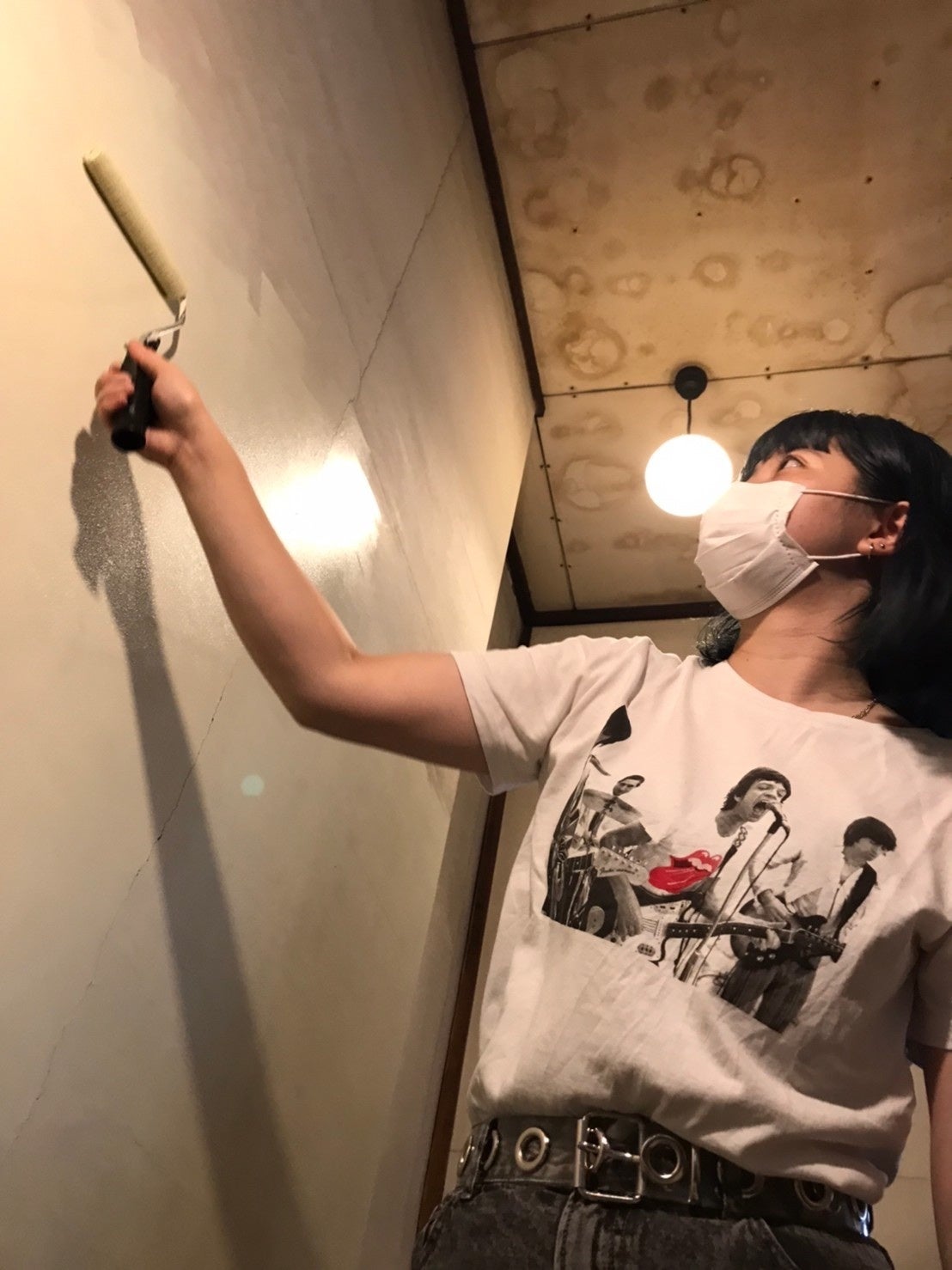 本日は、大月駅の近くにあるカフェ&ショップの「月のうらがわ」さんの壁をペンキ塗りさせていただきました!