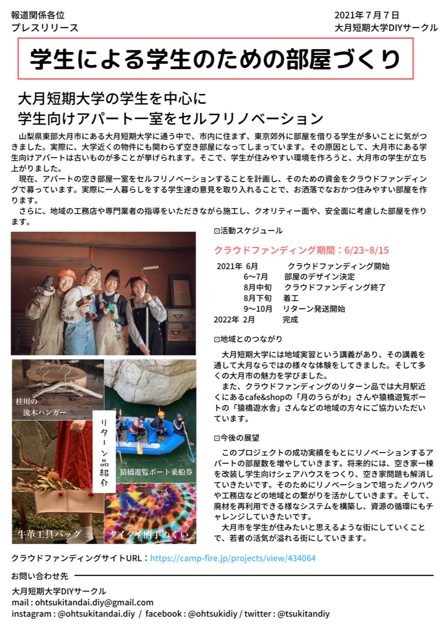 このクラウドファンディンのプレスリリースが完成いたしました!