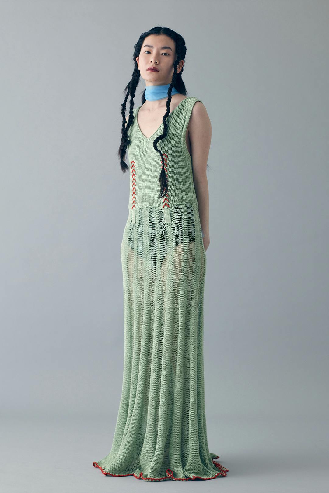 デザイナーの雲平さんからのコメント:「ニット職人の早川さんと開発したユニセックスニットシリーズ。独自のデコルテのデザインとたっぷりの袖が特徴のプルニット。これ一枚でワンピースにも、パンツとセットアップでも着る事ができます。家の中でもリラックスできて、もちろんそのまま外出してもかっこいいコットンニットを開発しました。素材がコットンなので毛玉も付きにくく、吸湿性に優れ、洗濯も可能です。」