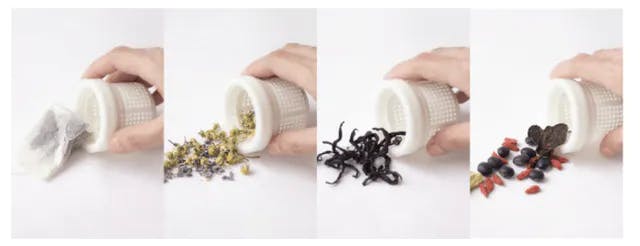 KOKOROフラスクには、一体型の磁器製茶こしが付属します。