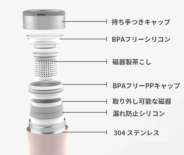 こちらを利用すれば、茶葉の散乱を防止可能に。茶葉をそのまま入れて、お使いいただけます。まさに、お茶好きのためのドリンクボトルです。