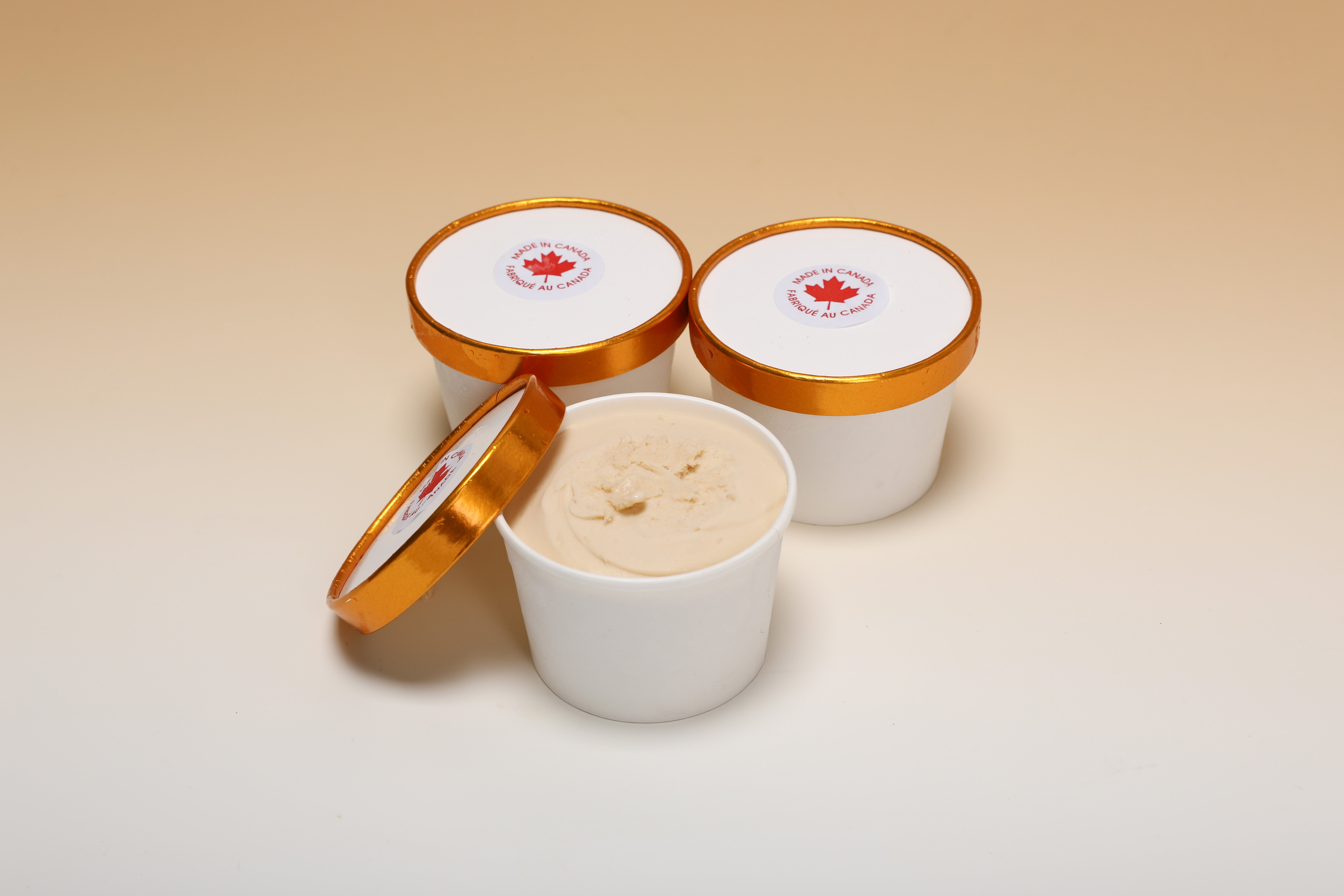 100%カナダ産メープルシロップを贅沢に使用しました。少し溶かして、メープルシロップをかけて食べるとより濃厚さが増します。パンと一緒に食べても相性バツグンです。
