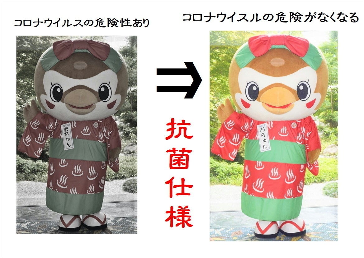 抗菌仕様の特別着ぐるみ「おちゅん」を1体と、