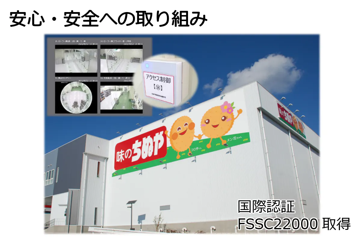 国際認証でもある「FSSC22000」を取得した自慢の工場で、食の安心安全にまじめに取り組んでおります。