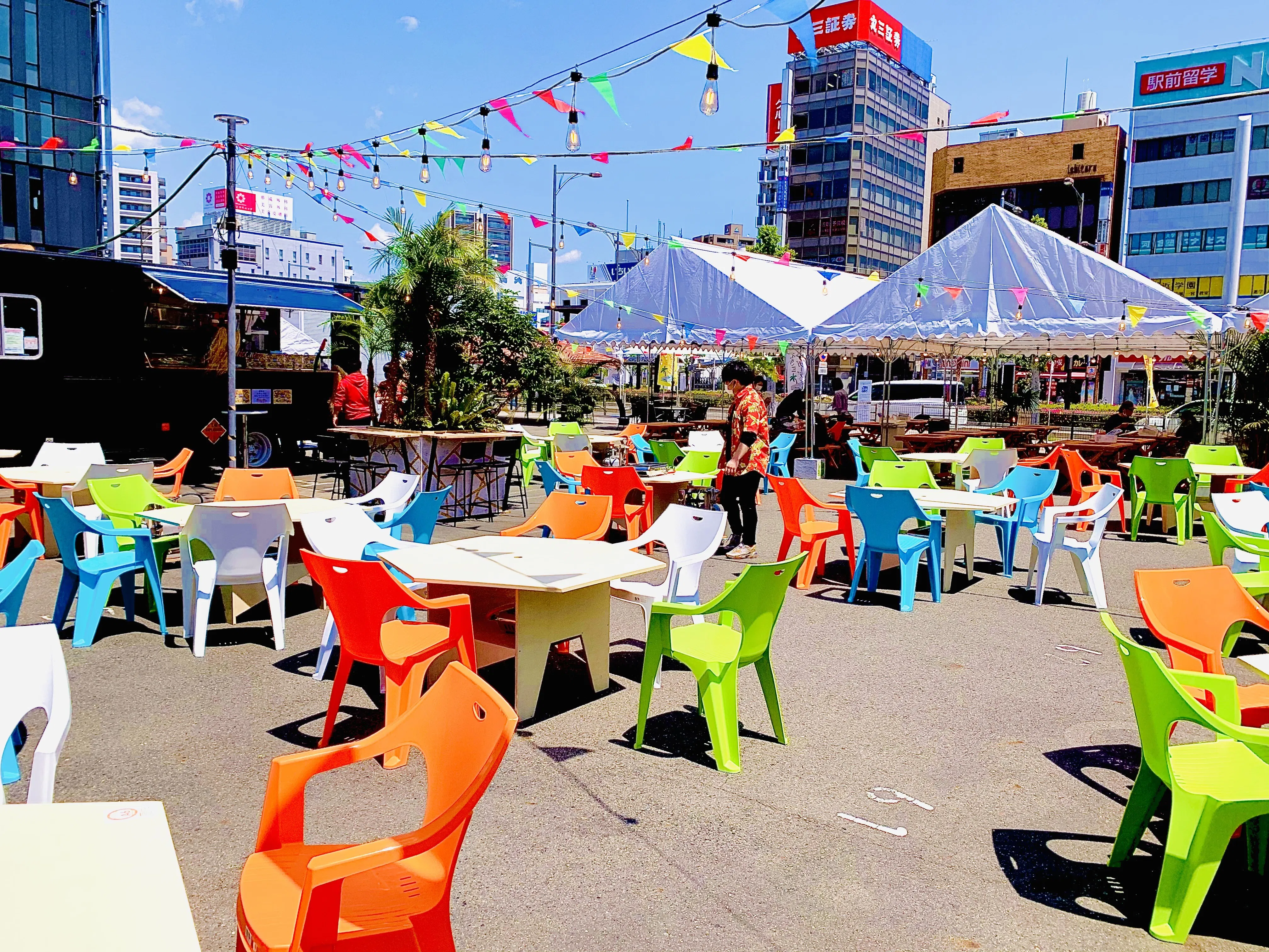 #いちえきビアガーデンは地区最大級を誇り、本来の400席からゆったり280席の会場へとしました。