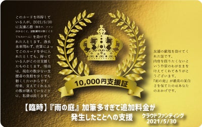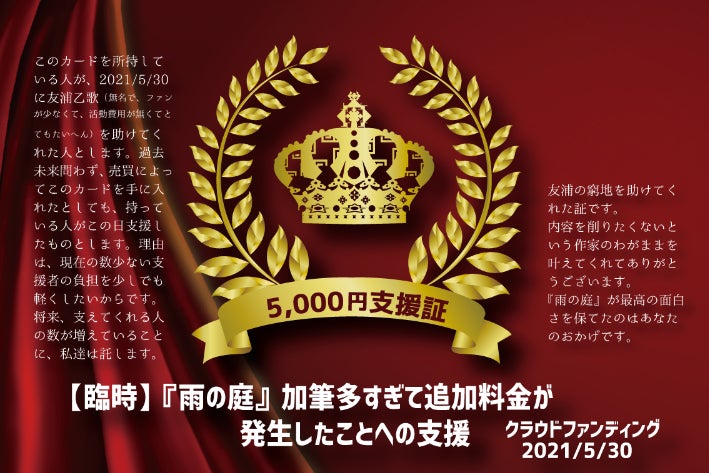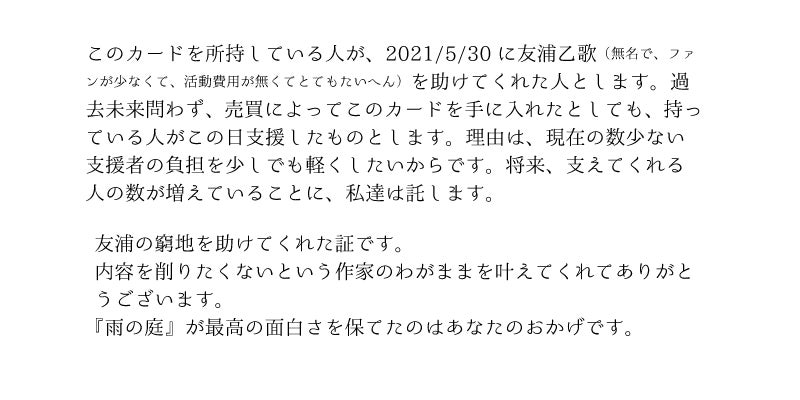 『雨の庭』がバカ売れした暁にはこのカードをヤフオクで売ったり自慢したりしてください。