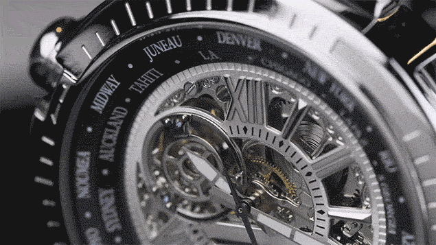 A、世界の主要都市名が時計のベゼル部分に表示されています。ベゼルの都市名と24時間マーカーの組み合わせにより、各都市の時刻を知ることができます。
