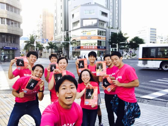一人ひとりに地道に知ってもらう事も同じく必要だと思い、那覇の県庁前にて1枚ずつ配っています!!