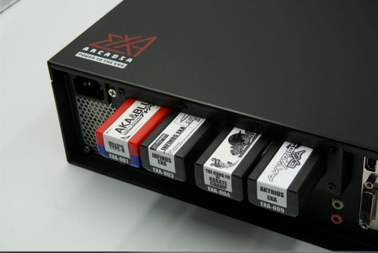 1990年代にゲームセンター業界で大ヒットを記録したSNKのNEOGEOのマザーに仕様が似ています。4本のソフトを簡単に入れ替えられる、とても利便性の良いシステムです。