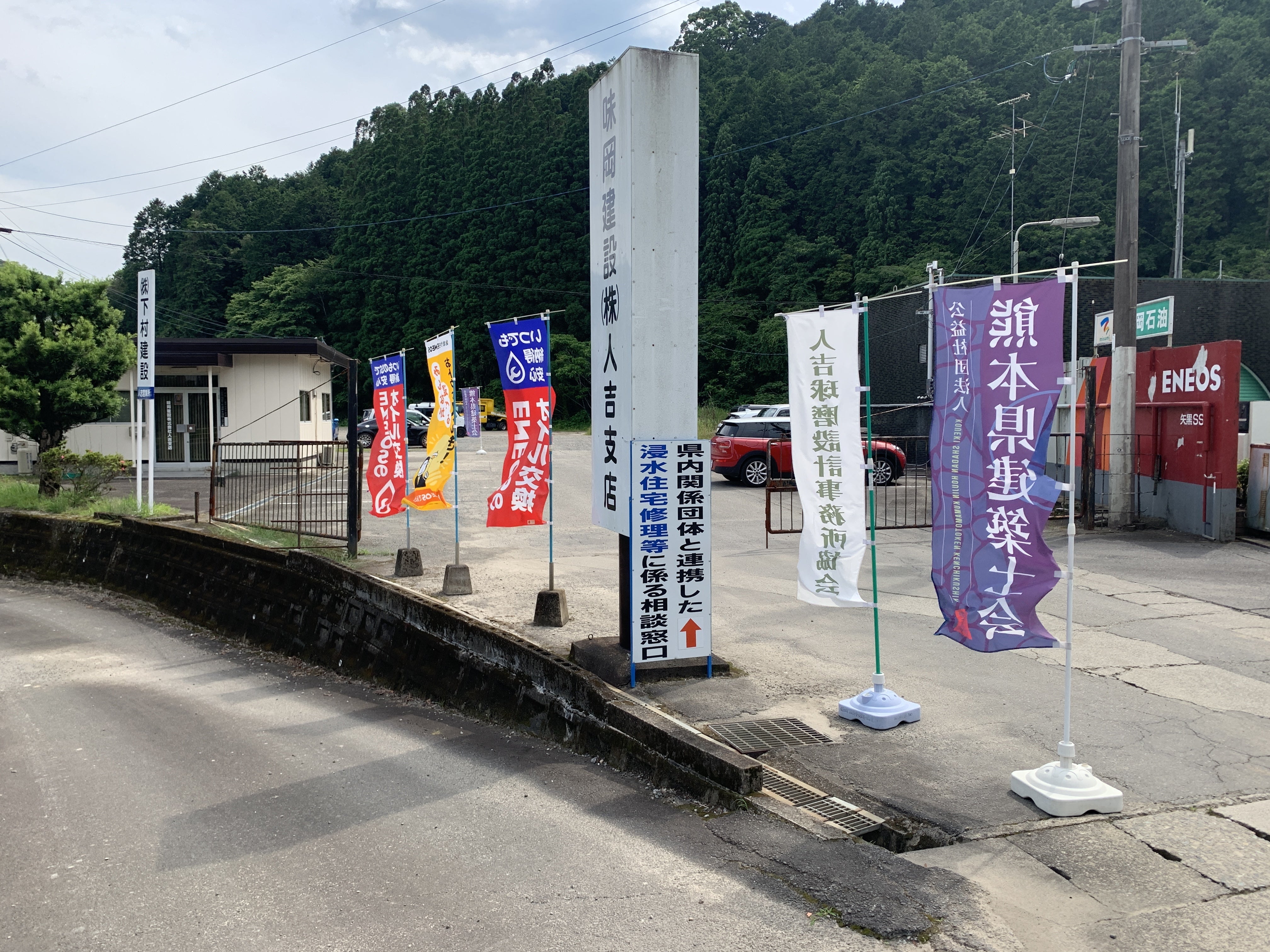 場所は、人吉市の国道219号(通称矢黒バイパス)沿いのENEOS矢黒ガソリンスタンド横、味岡建設株式会社さんの人吉支店の奥の一画をお借りしています。