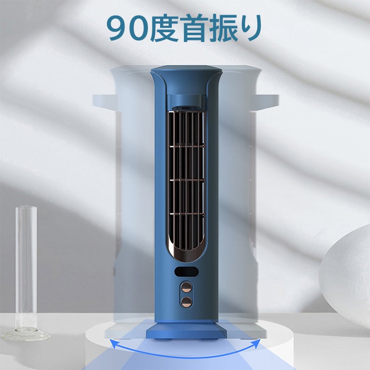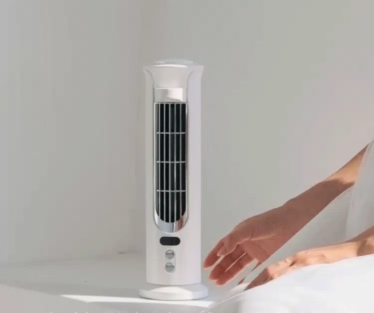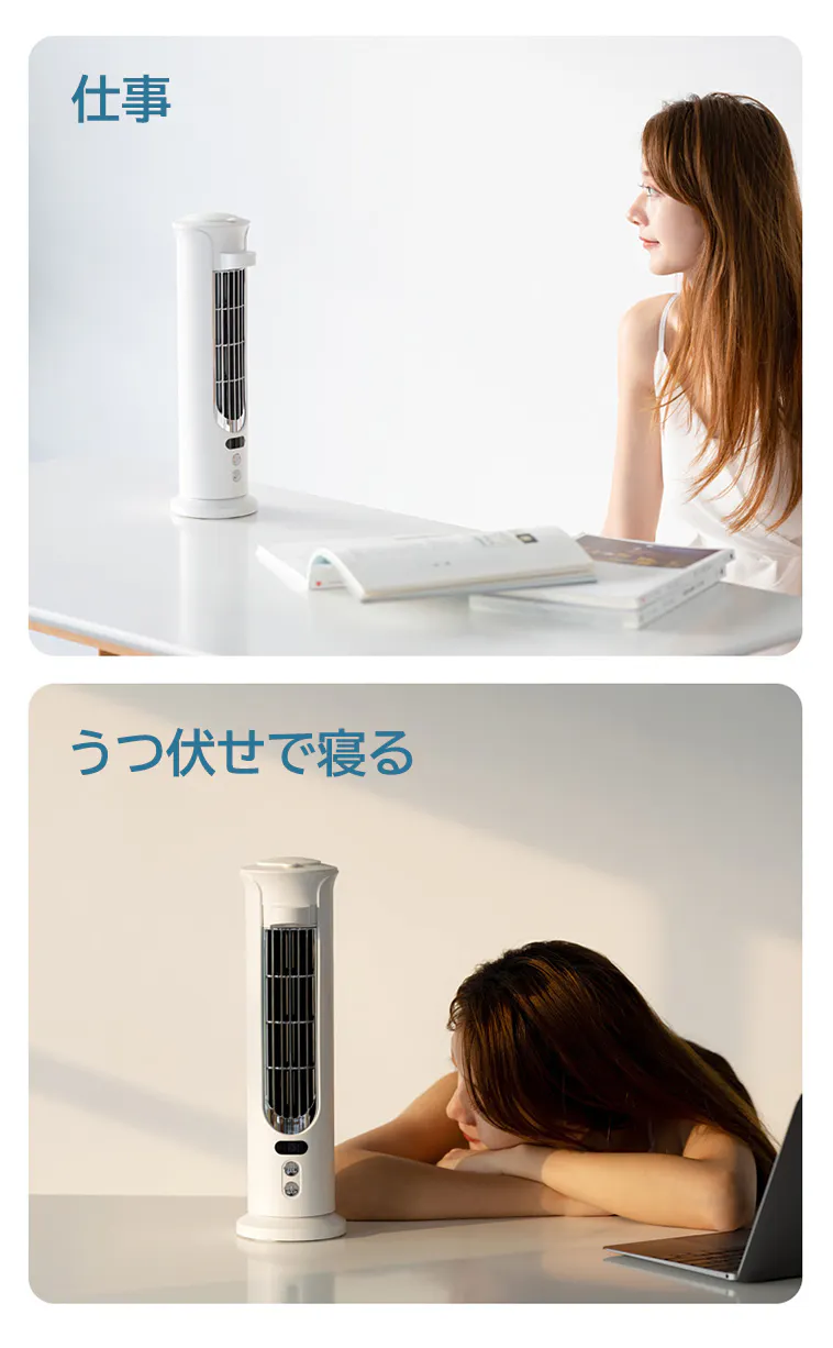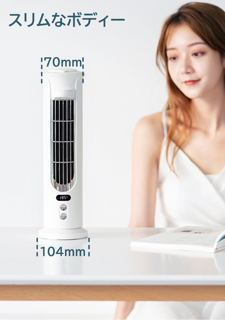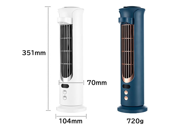 冷風扇「iLair」の底部の直径は10.4cmで、僅か80.1cm²、スマホ並みの面積を占めています。従来型の卓上扇風機より遥かに小さく、空間を節約し、狭いテーブルに置いても違和感を感じません。