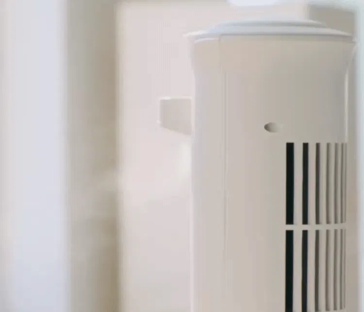 冷風扇「iLair」はすっきりしたデザインをしていて、ハイセンスなインテリアになじみやすいため、まるで芸術品のように卓上の置物としてエレガントな空間を演出。