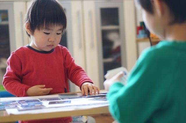 知育教材やおもちゃ・玩具を通じて、集中する力、考える力を育てます。少人数だから、その子に合わせたやり方で少しずつ進めていくことができます。自分のペースでできるから、分かるまで何度もやり直すことができますし、分かることが自信にもつながります。