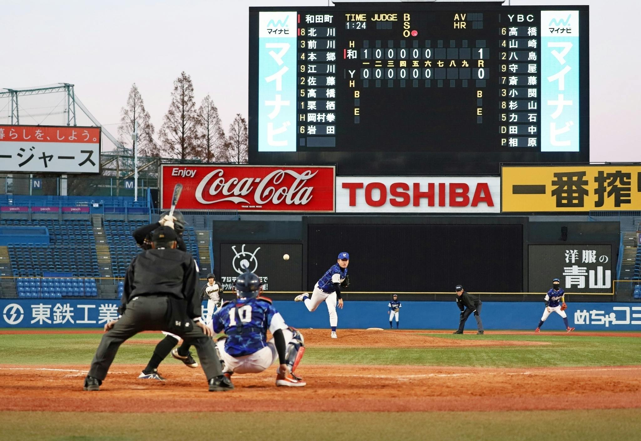 1ヶ月前に各チームに日程の都合を聞き、対戦カード・試合日時を決定するという方式で運営しています。1ブロック8チーム総当たり戦。上位2チームが決勝トーナメントに出場します。2020年度の決勝トーナメントは神宮球場で開催しました。