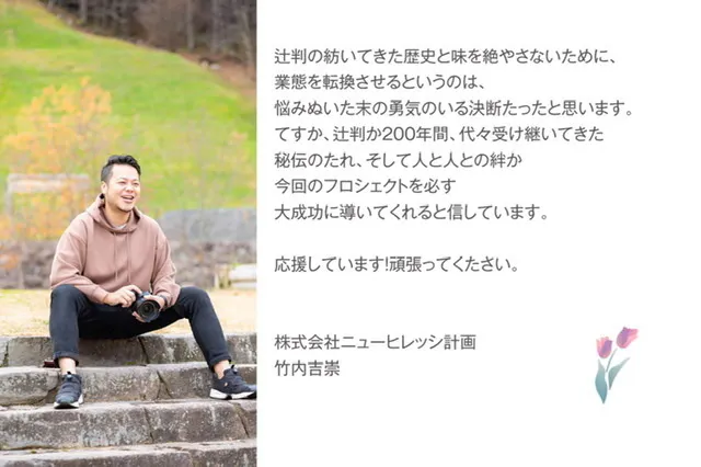 200年の歴史を継承していきたい、その一心で周りの沢山の方々にアイデアやアドバイスを求めたところ、本当に親身になってくださりこの200年の歴史ある辻判ののれんを守ろうと立ち上がって下さりました。