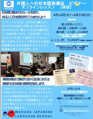 当校の生徒さんの約80%が海外からの短期滞在で日本語を学ぶ方々です。今はオンラインレッスンや福岡在住の外国人へのレッスン、日本人対象の「外国人への日本語指導講座」を行っていますが、売り上げは50~70%ダウンが続いています。