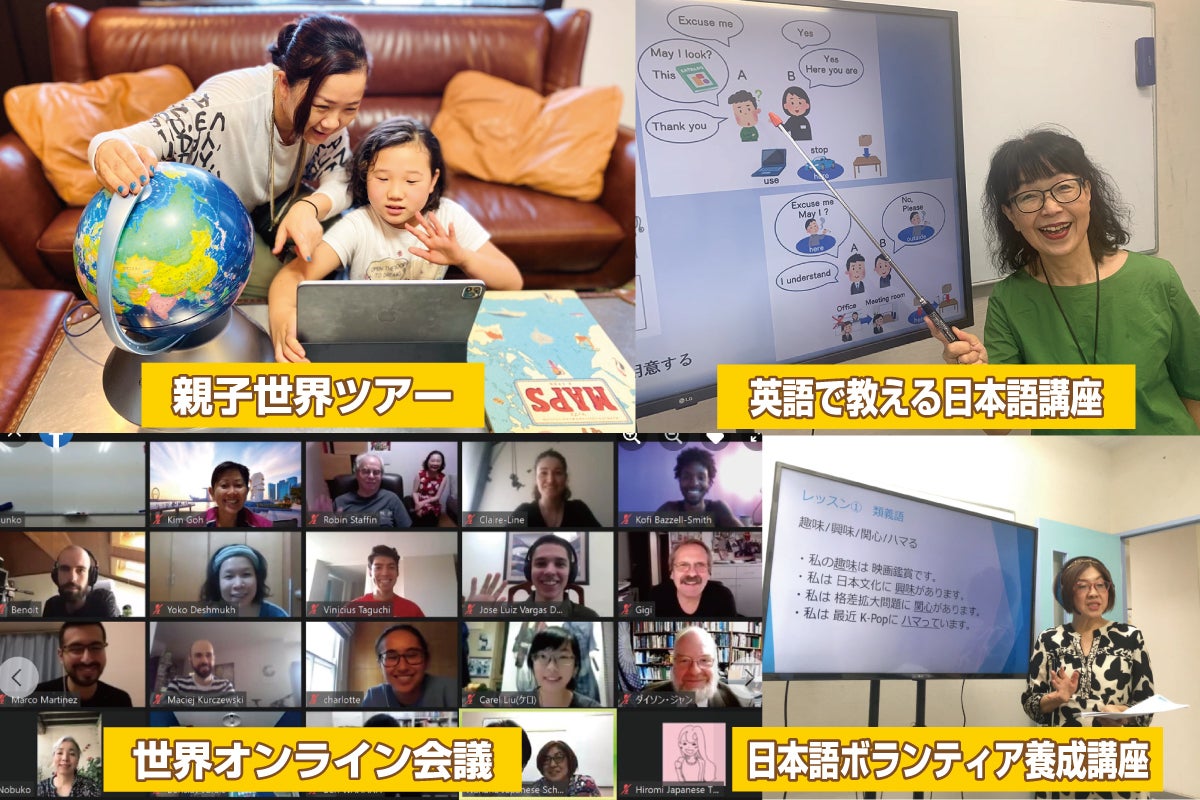 「親子で学ぶ世界オンラインツアー」「親子クッキングレッスン」「外国人トレーナーから学ぶ親子わんこトレーニング」やコロナ禍で孤立しがちな大人のコミュニュティづくりをサポートする「世界に通用するエレガントマナ-講座」「世界の子育てシリーズ」「外国人への日本語指導講座(開講中)」