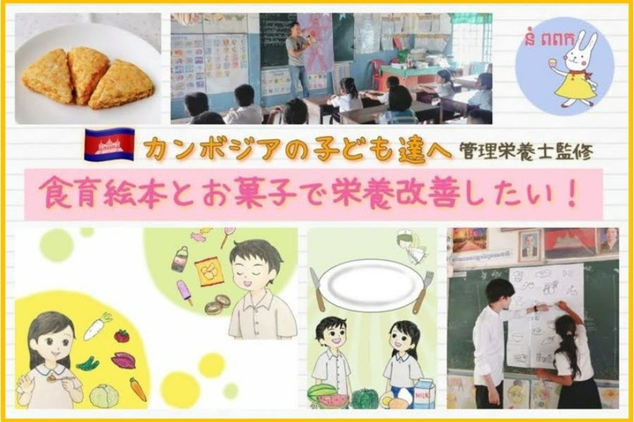 昨夏より、オンラインで集まった有志の皆さんとともにカンボジア食育プロジェクトを立ち上げ、カンボジアの小学生のための食育絵本と新しいお菓子を作るプロジェクトをすすめてきました。32の公立小学校・フリースクール・孤児院・病院を対象に、これらの学校や病院に通ったり、孤児院で生活する約950名の子どもたちに、完成した絵本とお菓子を届けることをめざして、必要な費用をクラウドファンディングで募りたいと考えています。