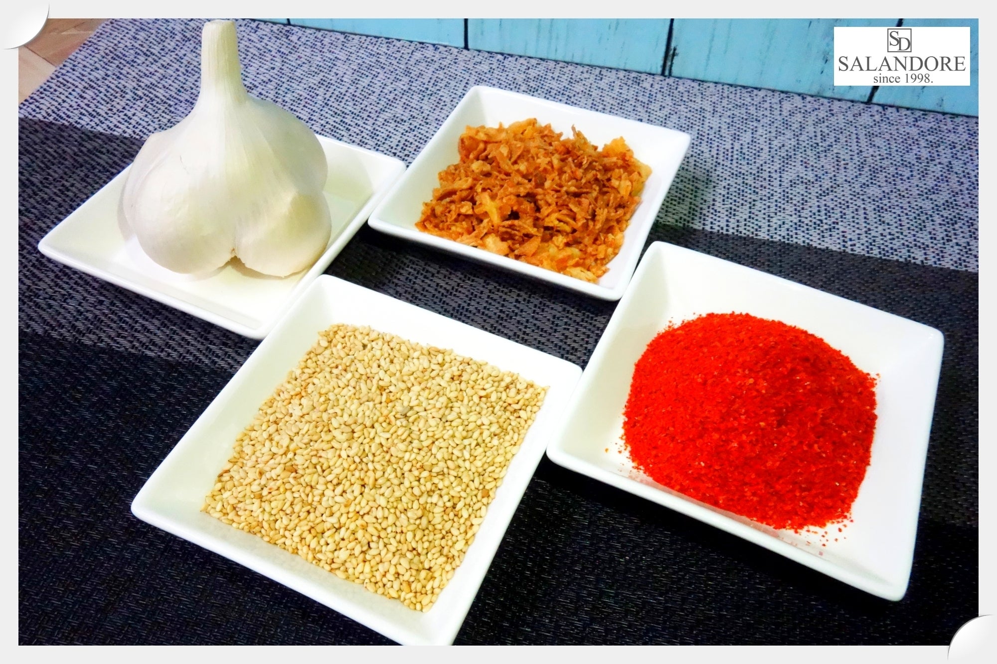 ごま、フライドオニオン(小麦を含む)、にんにく、食塩、ブラックペッパー、