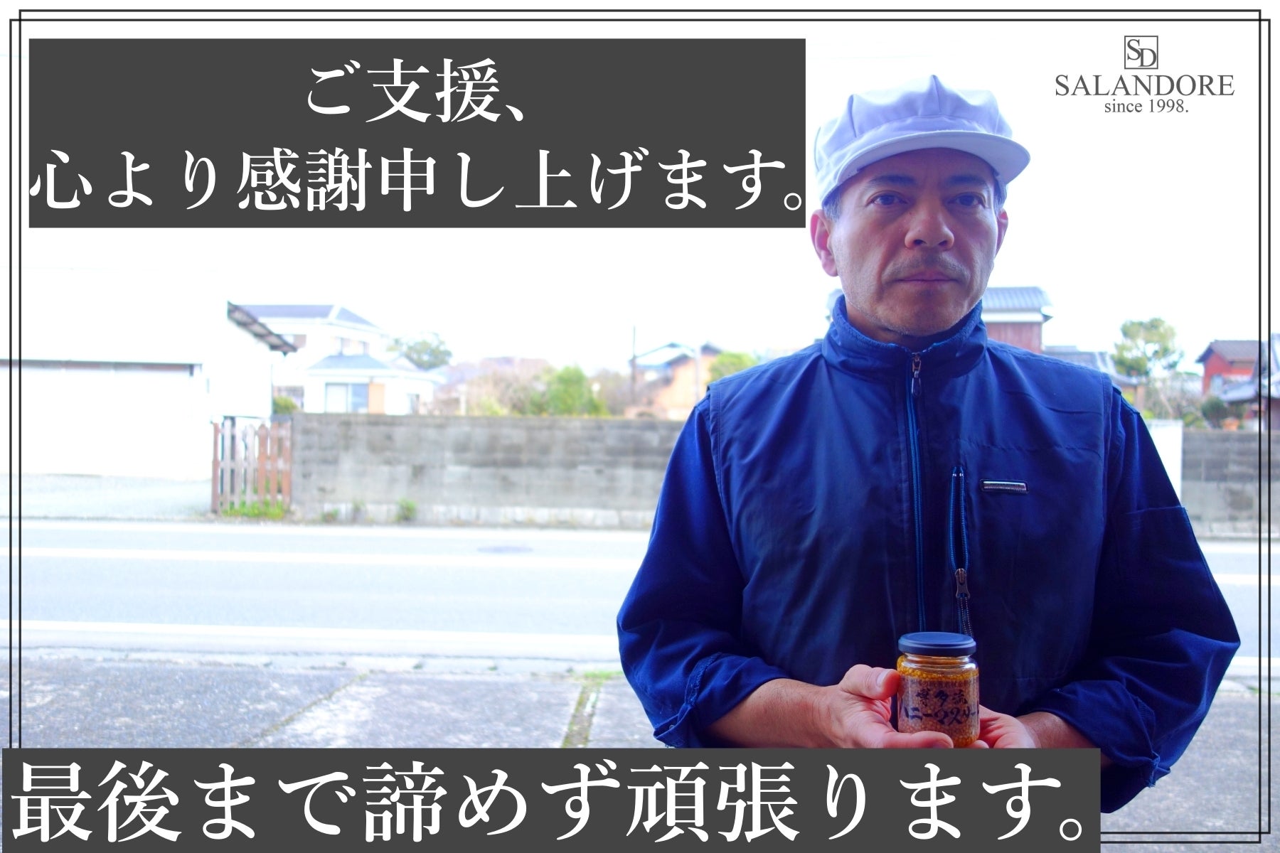 お世話になっております。福岡県の食品メーカー「サランドレ」の永田です。過去にご支援いただきまして本当にありがとうございました。ご支援いただいたことで今まで事業を続けてこれたこと、改めて心より感謝申し上げます。今回は、代表者の変更と新たなプロジェクトについての活動報告となります。●新たなプロジェクト【被災から復旧させ、父から思いを引き継ぎ、愛される味を存続させたい。】https://camp-fire.jp/projects/view/726445今年の7月に九州を襲った九州北部豪雨。福岡県内でも死者が出るなど、甚大な被害をもたらしました。この際に、材料や資材の保管庫である工場兼倉庫が浸水したことにより、保管していた材料及び資材の全ての処分を余儀なくされました。また、工場自体の床や壁の損害も深刻で、稼働し続けていくことが難しくなり、工場自体の稼働停止にまで追い込まれました。様々な負担が増大した結果、これまで事業を続けてきていた私の父が倒れてしまい、サランドレは完全に事業停止することとなってしまいました。そこから、なんとか事業を再開したものの、現在も工場は稼働停止のままとなっています。また、父が続けてきたサランドレについても、息子である私が完全に引き継ぎ、これから全身全霊で続けていくことを決意し今に至ります。とても厳しい状況が続いており、私自身としても厳しいスタートですが、諦めず出来ることを最後までやっていこうと思います。ただ、現実はとても簡単な状況ではなく、まずは工場の復旧・再稼働をしなければそもそも続けていくこともできない状況です。そこで、被災から復旧して工場を再稼働するために新たなプロジェクトを開始しました。●新たなプロジェクト【被災から復旧させ、父から思いを引き継ぎ、愛される味を存続させたい。】https://camp-fire.jp/projects/view/726445どうか、プロジェクトのご支援やお気に入り登録、周りの方に広めていただくなど、可能な範囲で結構ですので、どうかよろしくお願いいたします。また、過去にコロナ禍でも父が皆様にご支援いただいていたことを知り、今回の被災でもご支援をお願いすることは、気持ちとしては憚られました。今まで応援していただいていた方に申し訳ないという気持ちがありますが、私自身、覚悟を持って進めていく必要があると思い、本プロジェクトを遂行するに至りました。至らぬ点もあるかもしれませんが、全身全霊進めてまいりますので、応援・ご支援のほどどうかよろしくお願いいたします。ご不明やご支援もがございましたら、何なりとお申し付けください。それでは、最後まで全力で頑張って参りますのでよろしくお願いいたします。※通知が必要ないと感じた方は、メール通知を「受け取らない」に設定していただけますと幸いです。