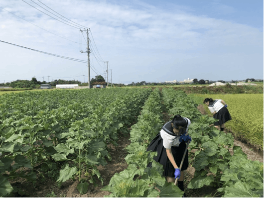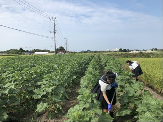 - 私たちは学校の近くにある作物を作る人がいない畑(遊休農地)をお借りして、約300㎡のひまわりの花畑を作りました。地域の方々との協力で、穫れた種から搾ったひまわりオイルで、自然素材のリップクリームを商品化することに挑戦しています。このような農地はあちこちにあり、このような活動が広まれば除草のため耕すだけの年中土が露出した農地を花畑にすることで僅かでもCO2を減らすことにもつながるのではないかと考えています。