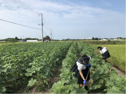初年度は見事に満開したのですが、収穫予定直前に2つの台風に見舞われ大被害を負いました。しかし、それも含め生徒の探究活動に持ってこいのフィールドと思われ、活動の継続を決めました。ひまわり栽培では幼稚園児と一緒に農作業をしたり、花が咲くと通りがかりの方が足を止める地域の方との交流の場にもなりました。