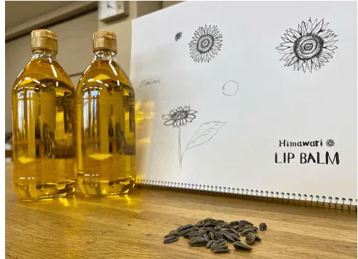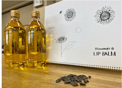●自分たちのひまわりオイルで化粧品「リップクリーム」を作りたい!