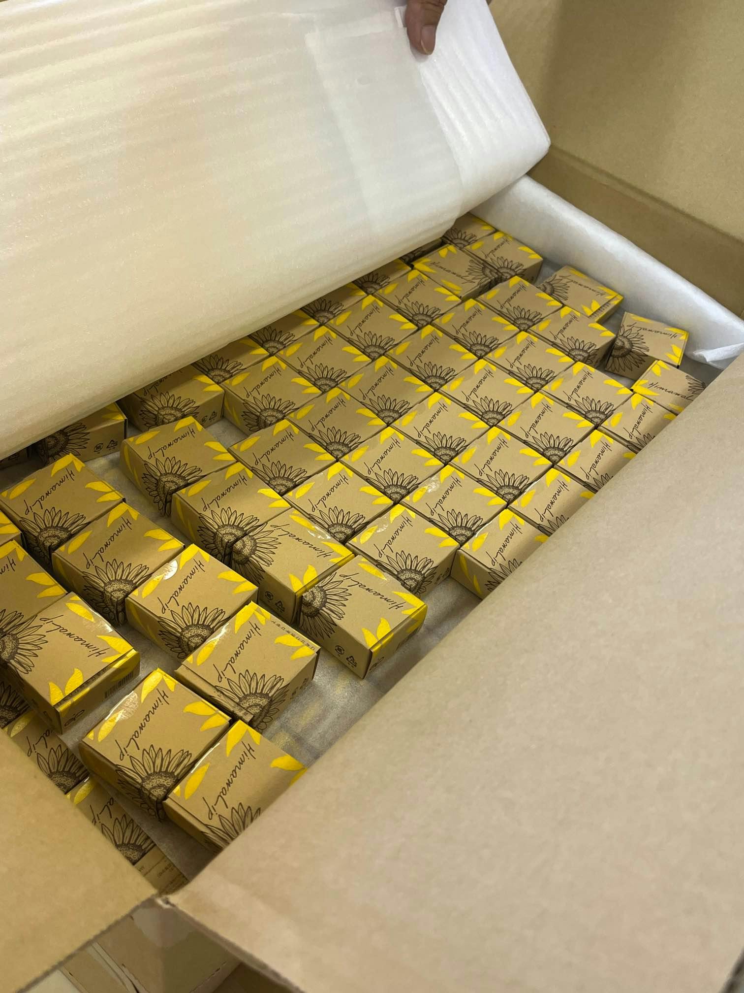 商品の数が増えると私たちの畑から取れるオイルだけでは足りなくなります。そのため、市内の畑で同じ種を使って市民の方々が育てたひまわりの種を市内の社会福祉施設の方の手で種を選別して搾油したひまわりオイルも一緒に使用させていただきます。育て方を指導してくださるNPO法人バイオライフさんに低温圧搾の搾油をお願いしています。