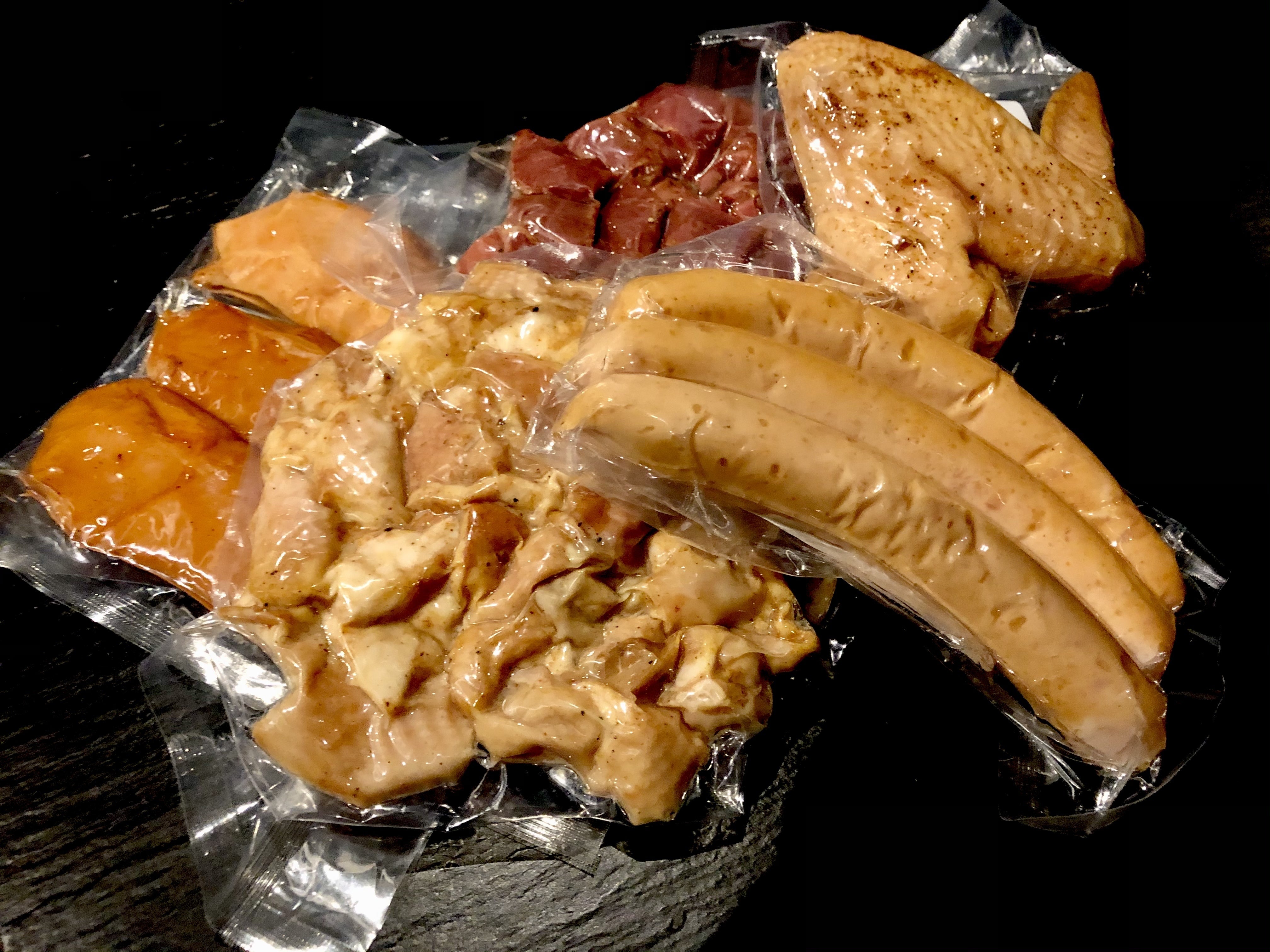 お肉はしっとりとした食感を残しつつスモークの香りを楽しむ逸品。大手羽、ソーセージ、ささみ、皮、砂肝の5種類が入った超お得セット。信州の地鶏の旨味を味わうにはぜひ。