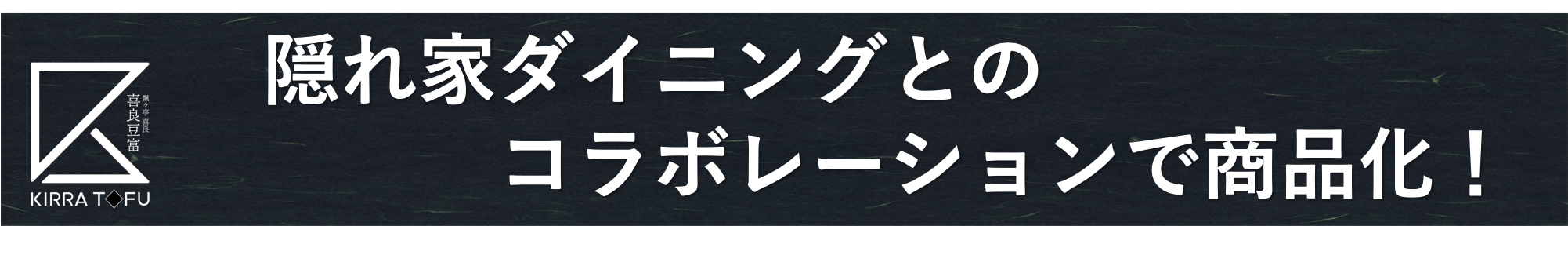 そして昨年、ついに「飄々亭(ひょうひょうてい)喜良」とのコラボレーションが叶い、「喜良豆富」の製造・販売にこぎ着けることができたのです! 「喜良」にレシピを提供していただき、試行錯誤を繰り返しながらも、自信を持って食べていただける商品に仕上がりました。