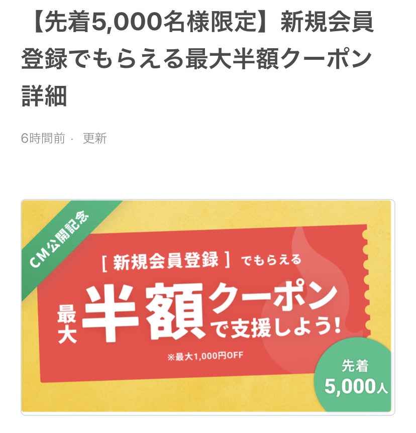 新CM公開記念キャンペーンがはじまりました。この機会にぜひ、ご支援宜しくお願いします!!