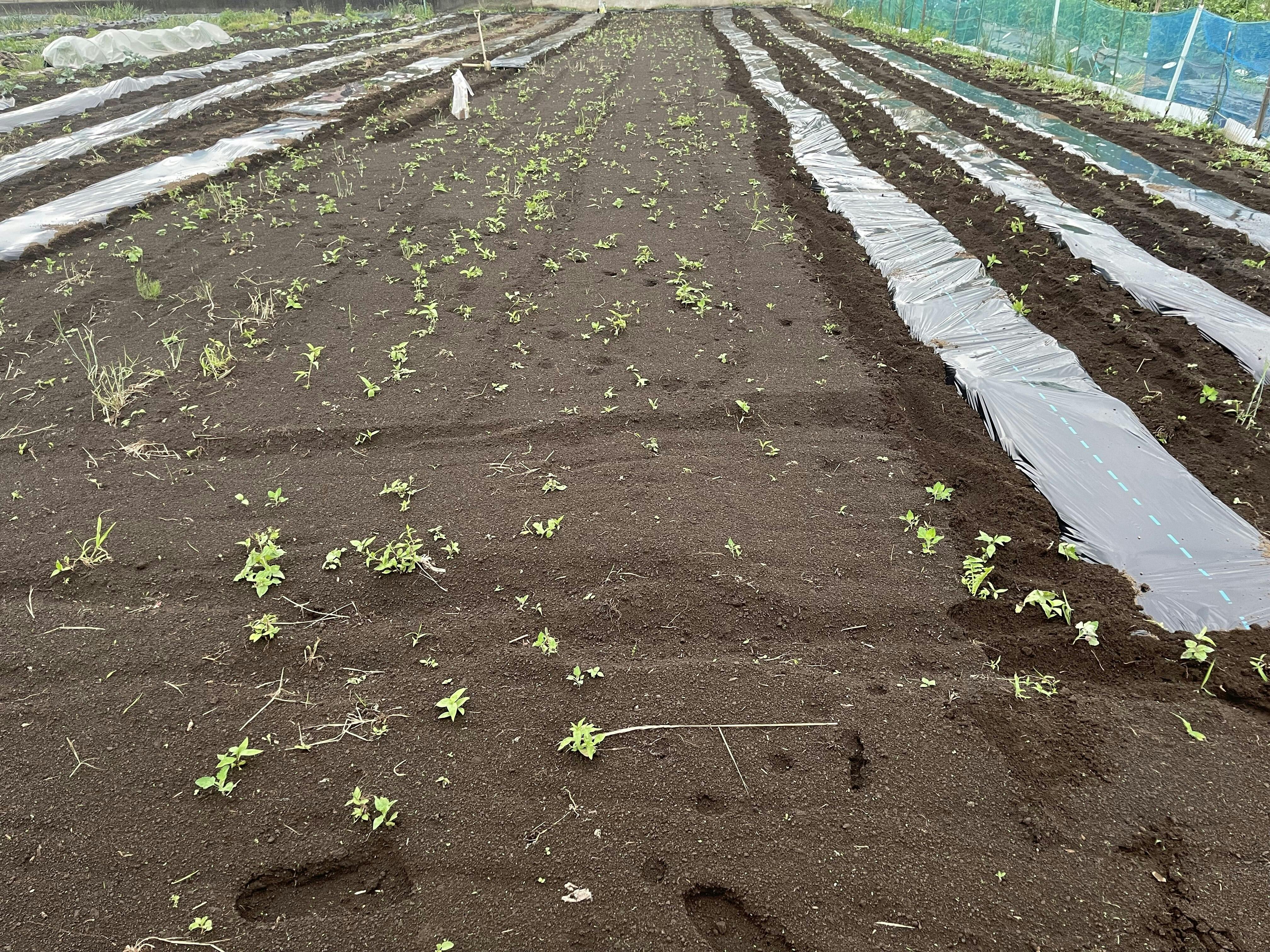 取り急ぎ、農地にどんどんマルチンング(雑草予防や地温確保、乾燥から土を守るために黒いビニールを敷くこと。泥の跳ね返り防止なども期待できる。)をしています。